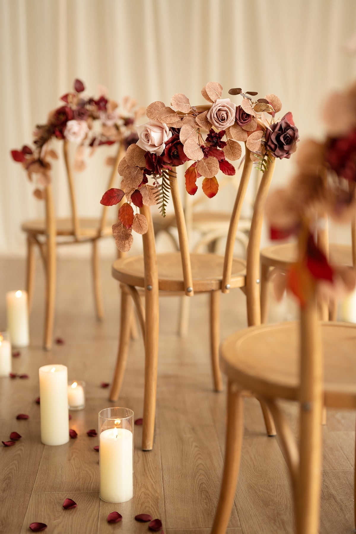 Material: This flower garland decor is made with silk and foam handcrafted flowers. Including burgundy camellia . black baccara avalanche rose . dusty rose rose . burgundy rose . black baccara rose filled with golden leaves . burgundy ranunculus . walnut brown bracken . black baccara eucalyptus . and walnut brown garland.