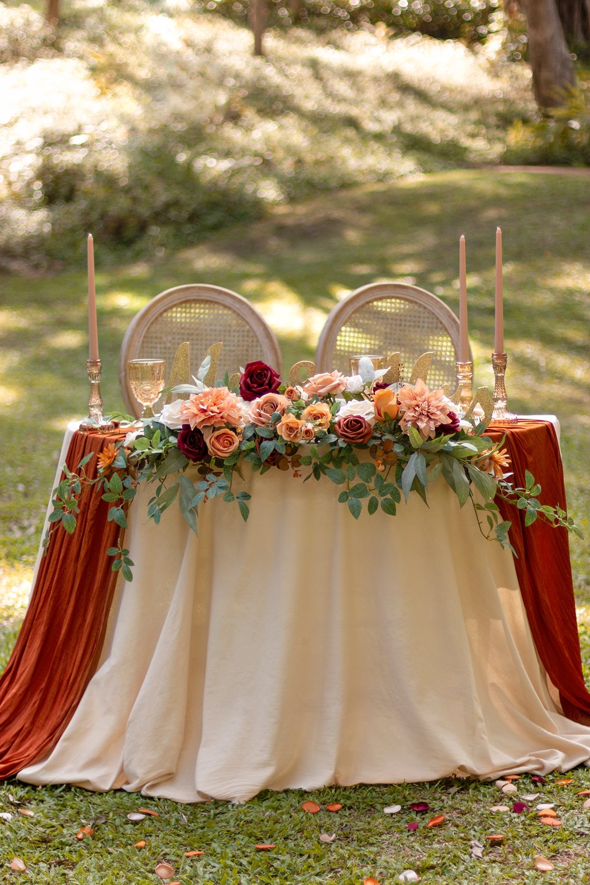 - Occasions: The floral swags design for Sweetheart/Head table decor . and its floral pile design-friendly for any other use . such as decor for bride and groom chair . wedding car . home mirror . window . and garden gazebo.