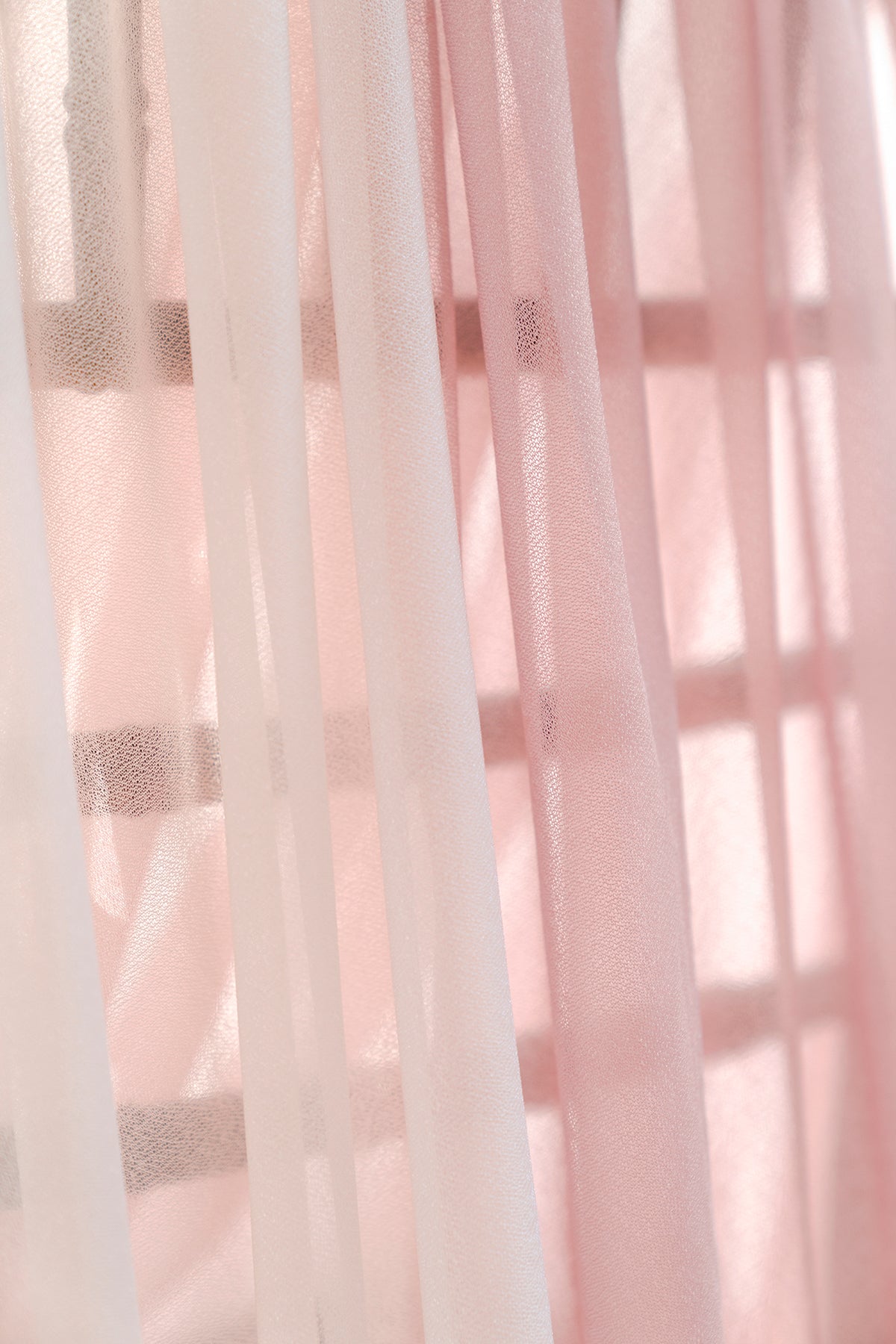 Unique wrinkle-resistant fabric makes this table runner READY TO GO. Two ribbon ties are included for gathering soft luminous folds looking at both ends. Or you may let it drape gracefully across your table and flow onto the floor in dreamy pools of fabric.