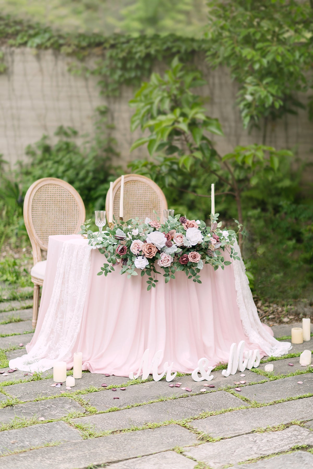 - Occasions: The floral swags design for Sweetheart/Head table decor . and its floral pile design-friendly for any other use . such as decor for bride and groom chair . wedding car . home mirror . window . and garden gazebo.