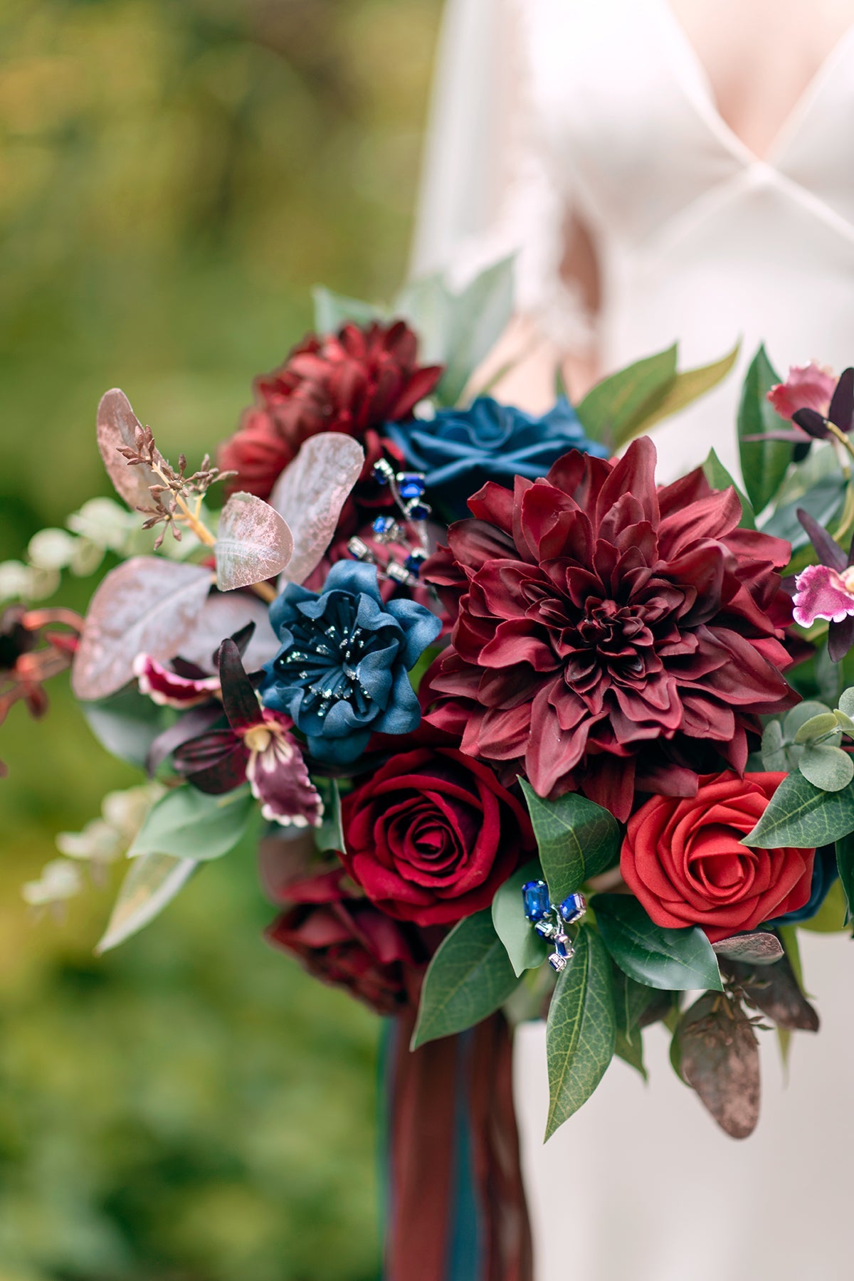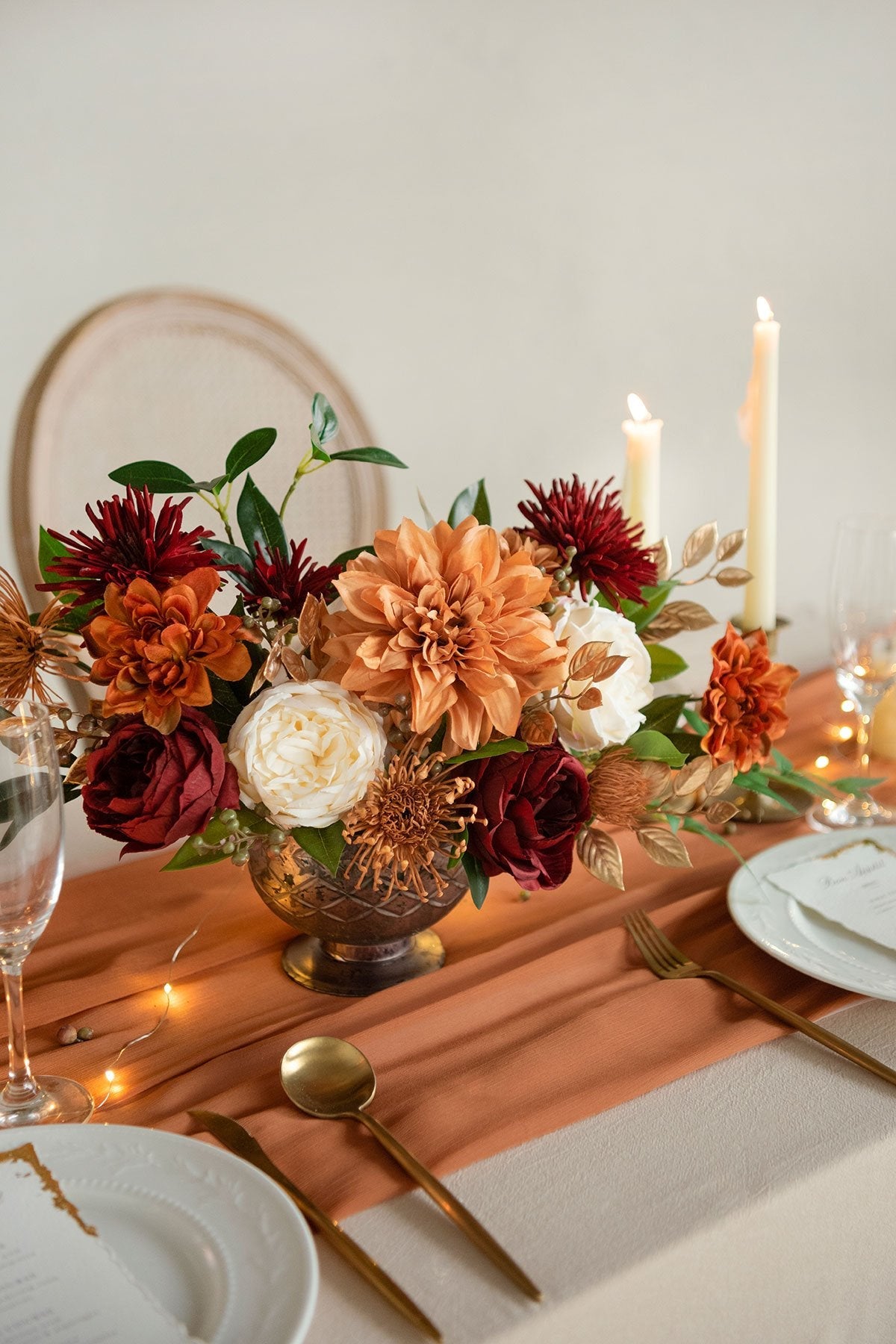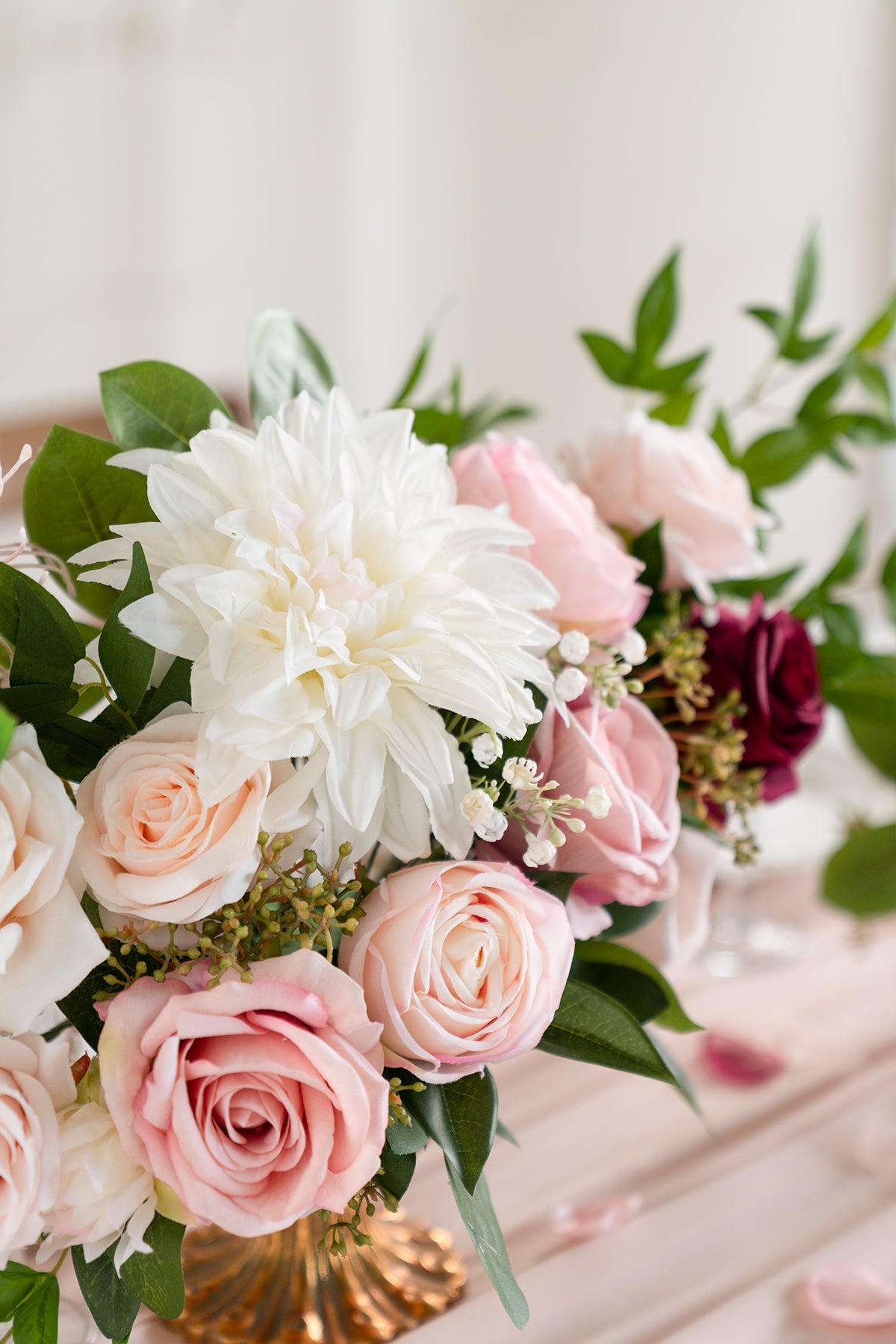 - Material: High-Quality silk dahlias; thin wire stems wrapped with green floral tape.