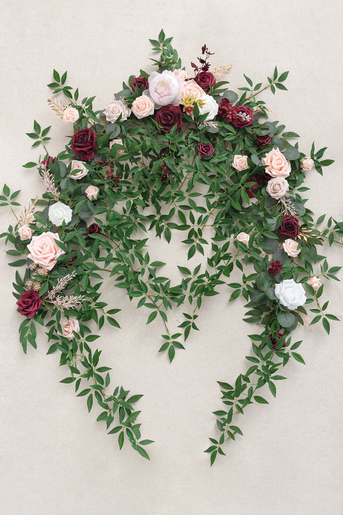 - Easy to Work: Iron wires inside the plastic stems for bending suitable modeling easily. Each garland comes with 5 ties for free for easy hanging and use. Best for small wedding ceremony backdrop/arch decor.