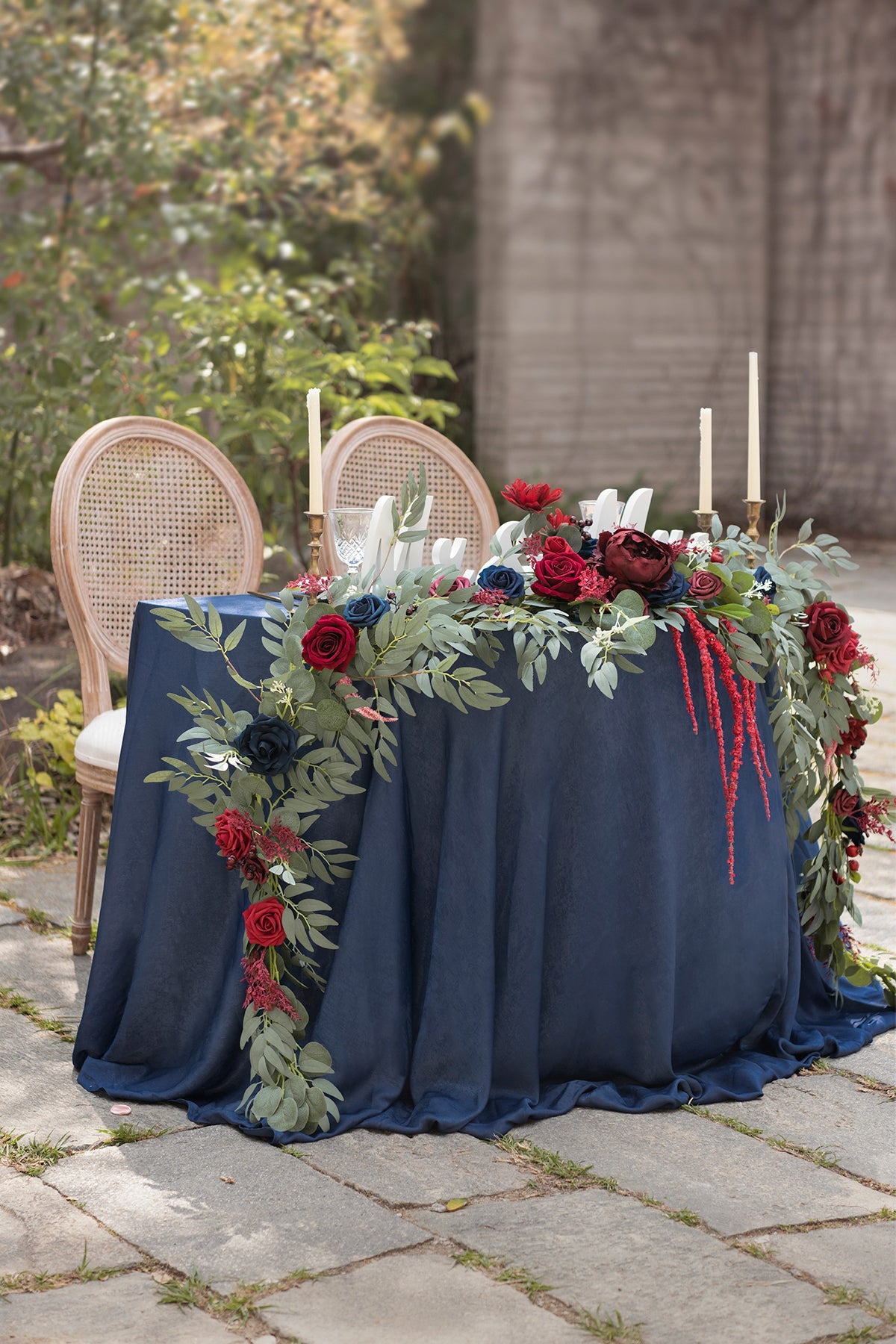 - DIY Guide: Refer to this Sweetheart/Head Table Flower Garland . DIY your own burgundy and navy flower garland table runner . you may prepare 3 Sage Eucalyptus and Willow Leaf Greenery Garlands . 2 Flowers Box Sets . and Greenery Combo.