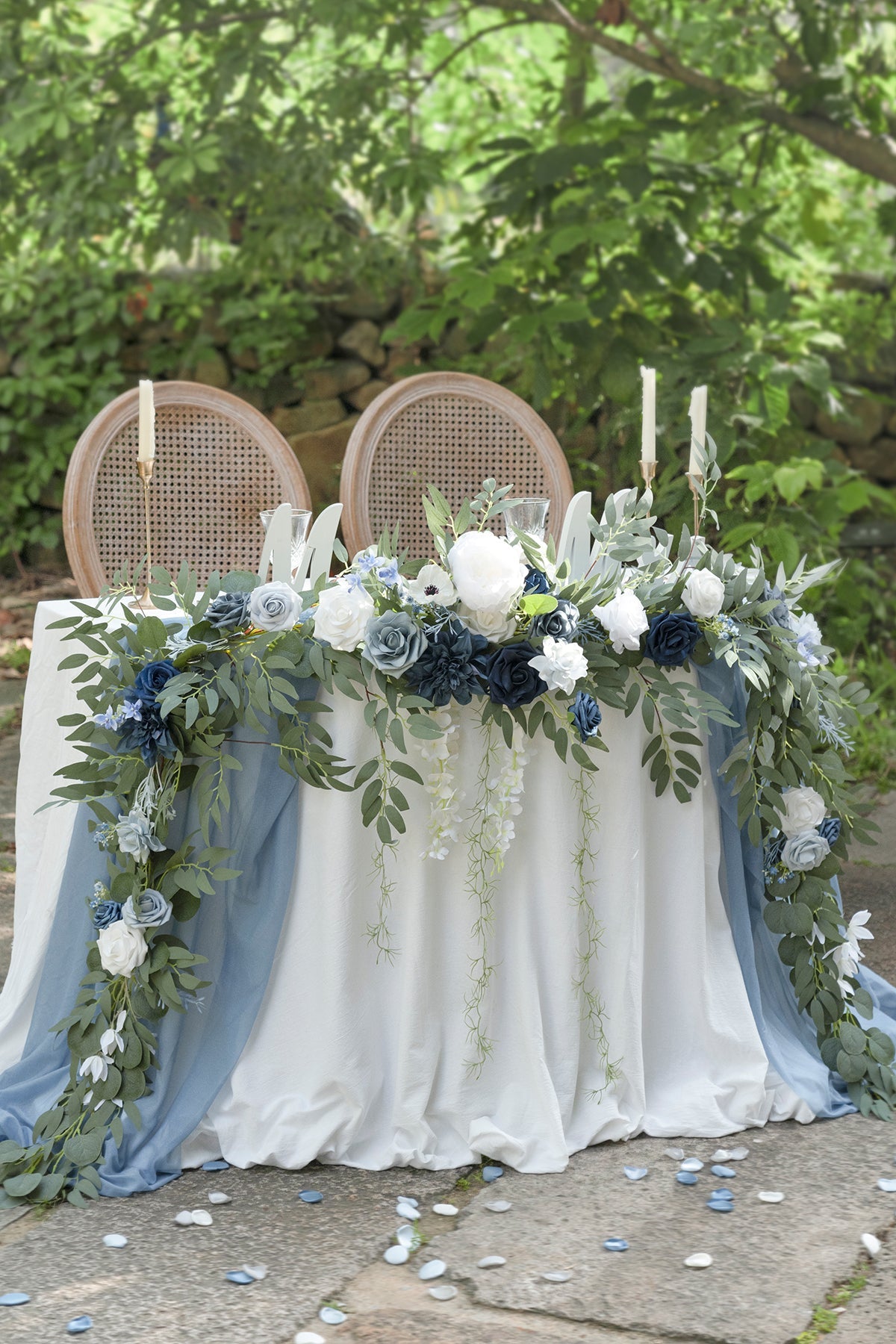 - DIY Guide: Refer to this Sweetheart/Head Table Flower Garland . DIY your own dusty blue & navy flower garland table runner . you may prepare 3 bunches of Sage Eucalyptus and Willow Leaf Greenery Garlands . 2 boxes of Flowers Box Sets . and 1 box of Greenery Combo.