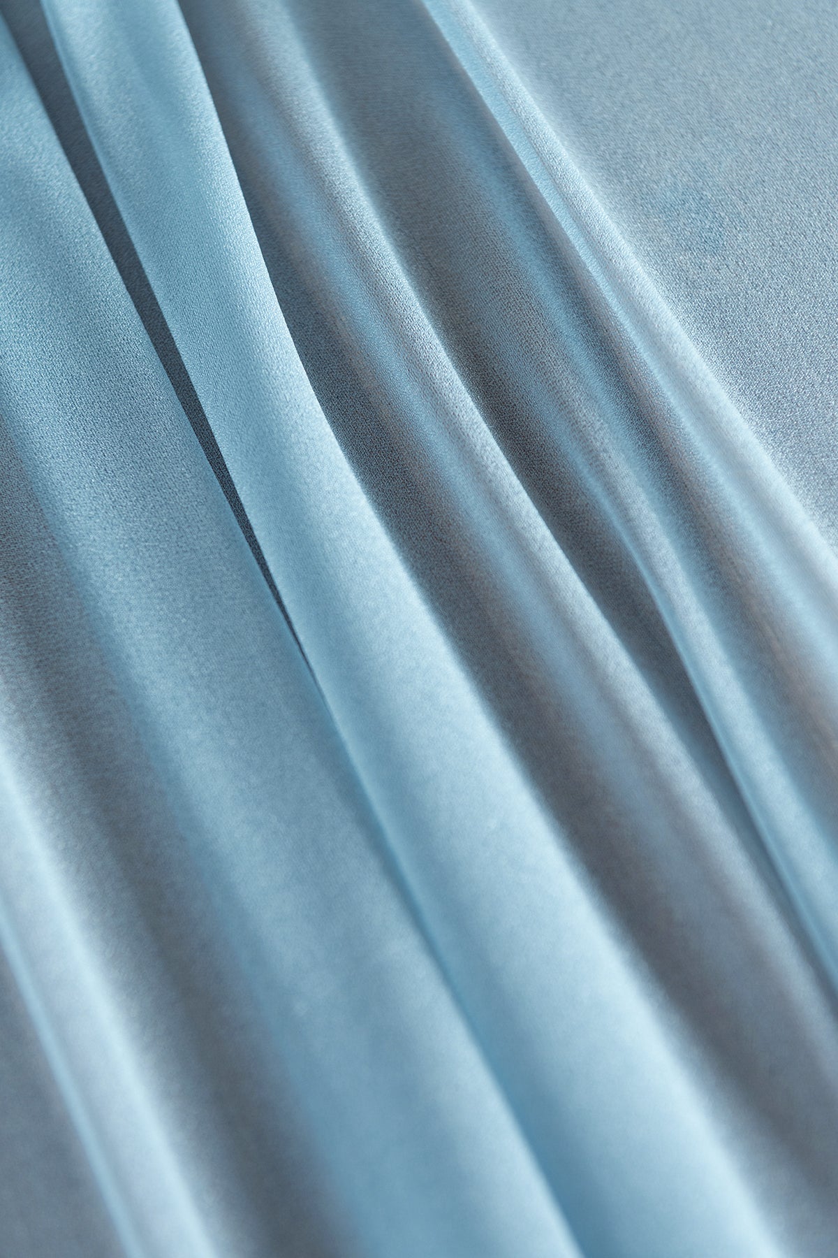 Unique wrinkle-resistant fabric makes this table runner READY TO GO. Two ribbon ties are included for gathering soft luminous folds looking at both ends. Or you may let it drape gracefully across your table and flow onto the floor in dreamy pools of fabric.