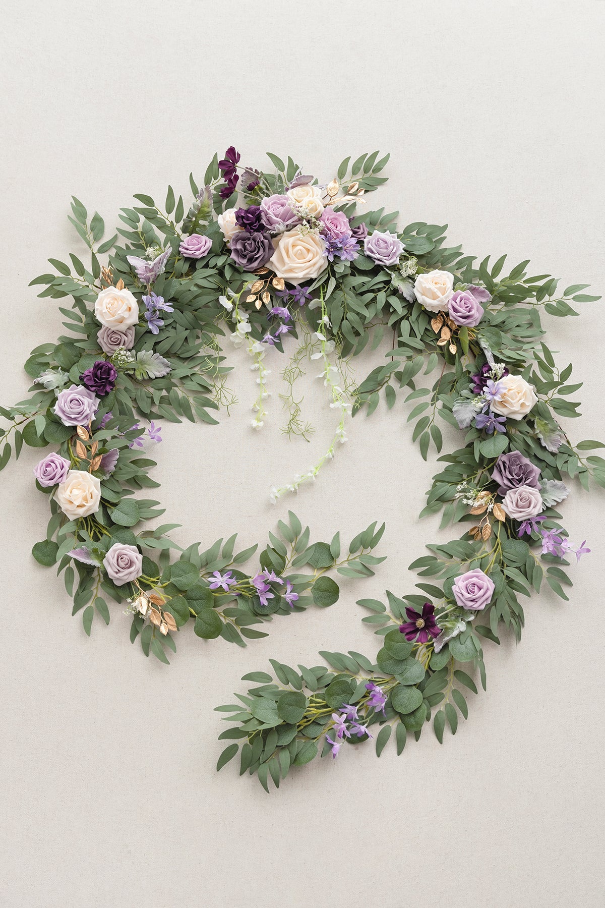 - Material: Handmade with silk/foam flowers and silk garland. The Vendela rose as the main flower . dotted with rose . gardenia . cosmos flower . banyan leaf . lavender . dusty miller . baby breath . and banyan leaf . perfectly blend with eucalyptus leaves . help to create your romantic spring/summer lilac theme wedding.
