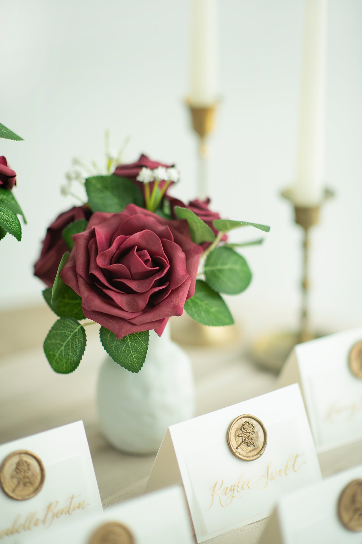 Attached with flexible wire stems . they are great ingredients for your DIY projects . such as bouquets . centerpieces . wreaths . or any other floral arrangements that you want at your wedding . party . or bridal shower.