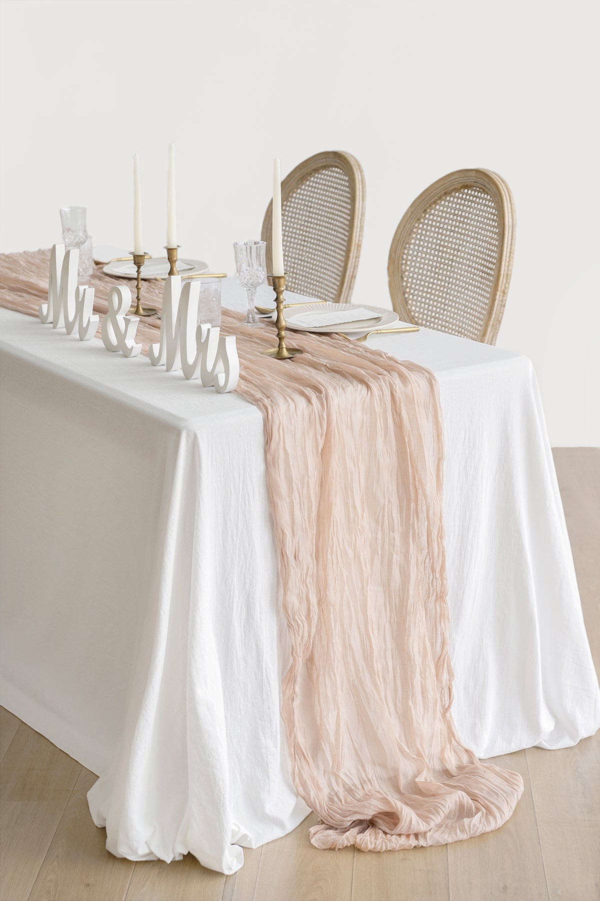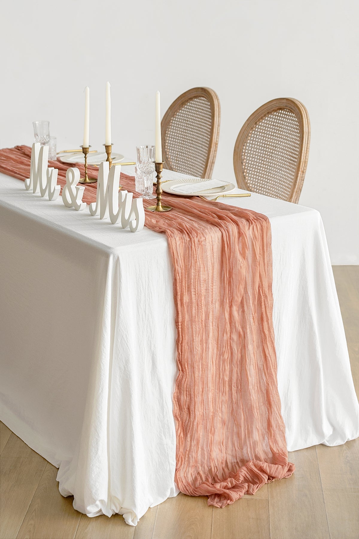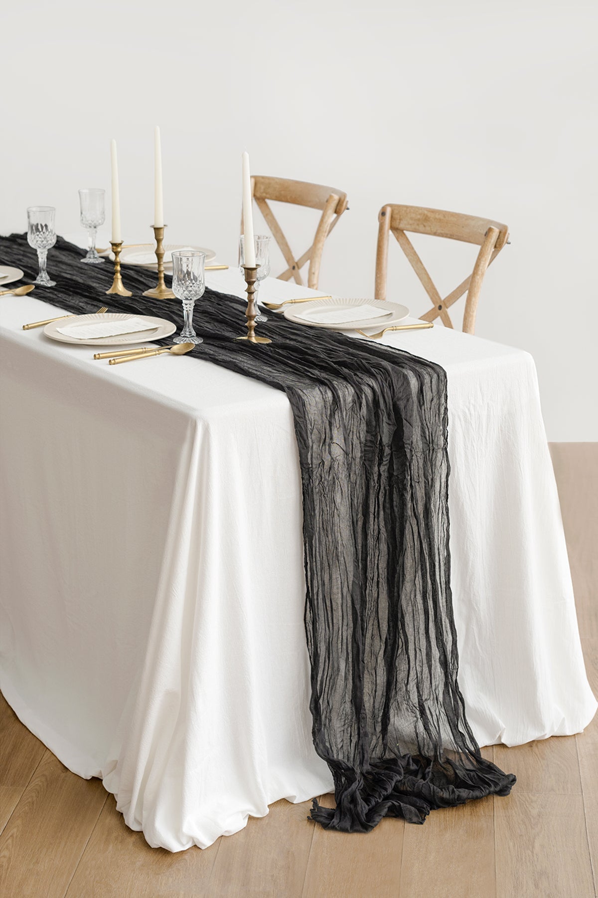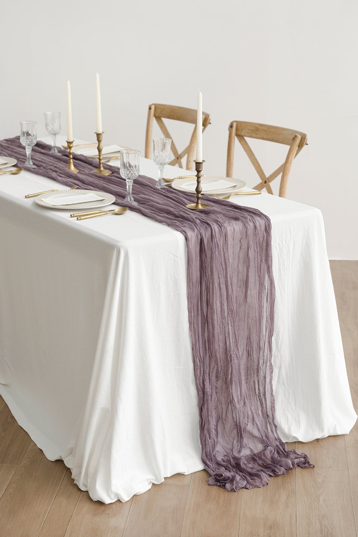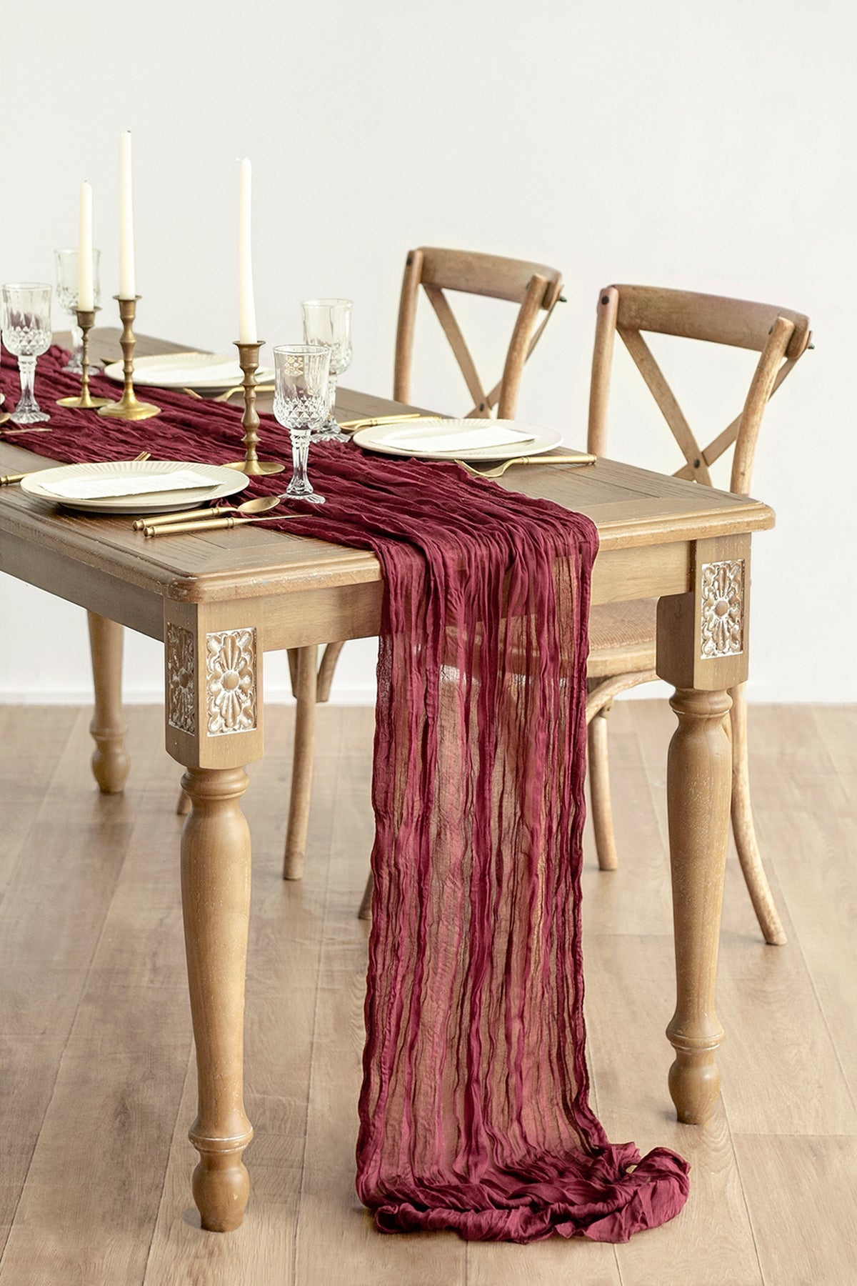 Material: 7%viscose and 93%polyester . premium cheesecloth gauze table runner with wrinkled.