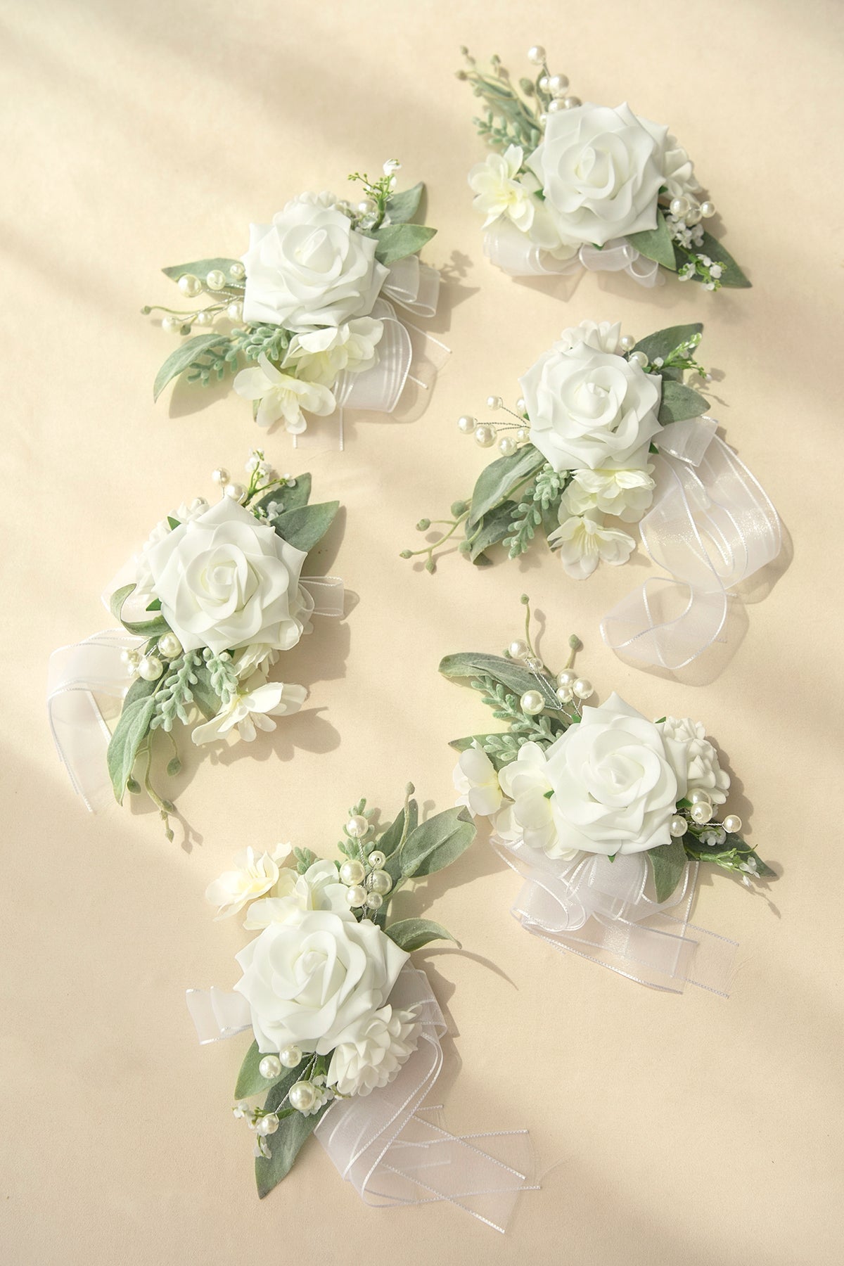 - Size: A set of 6. The wrist flower is approx. 3.5" L x 5.5" W x 2.5" H . and the ribbon is approx. 30" L x 0.75" W.