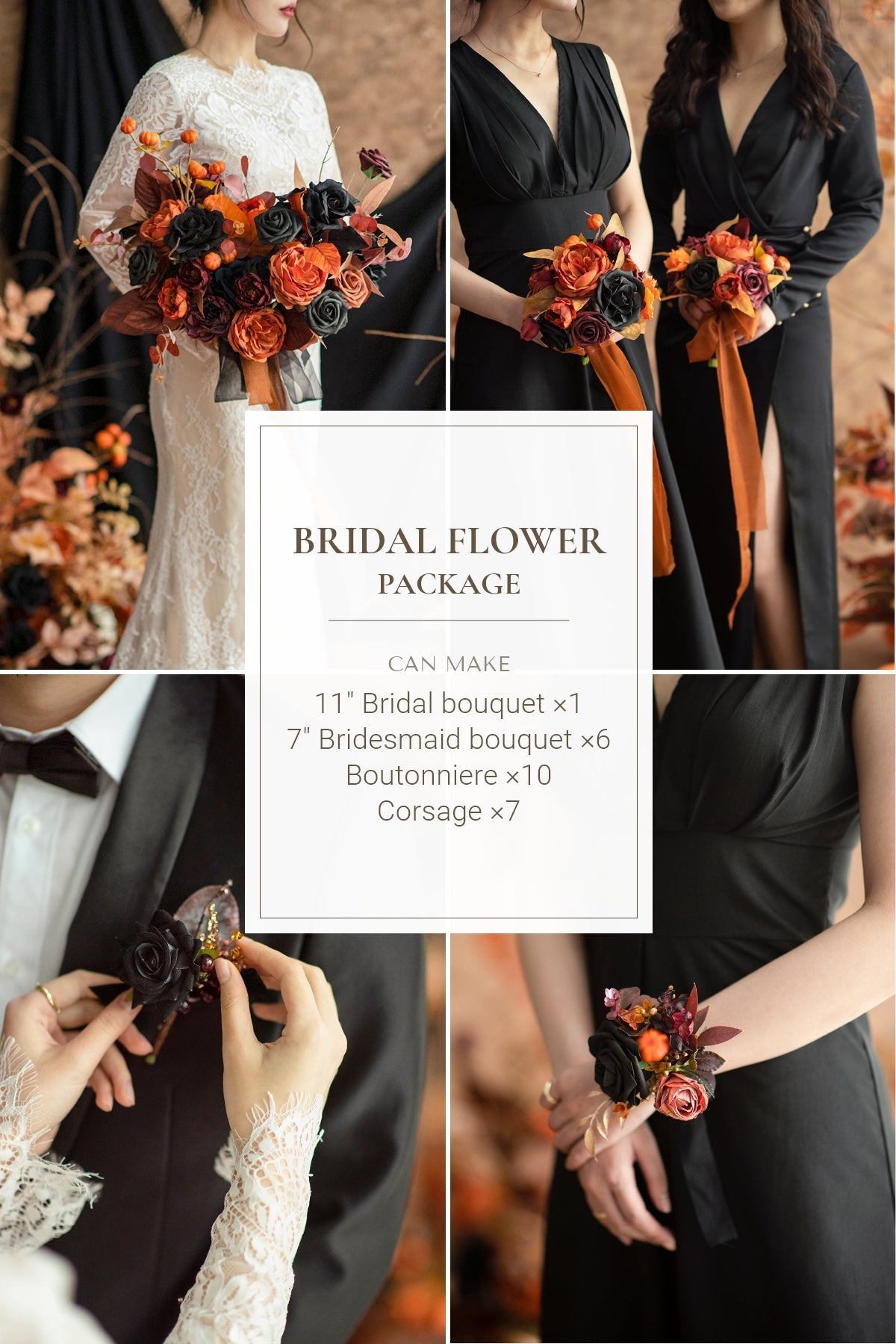 Black & Orange theme flowers and greenery packages are specially hand-picked by our designer for their quality and versatility. Now you could spend less time choosing the right items - gather all you need in just 1 click! What's more . you will save 40~50% compared to buying pre-made products.