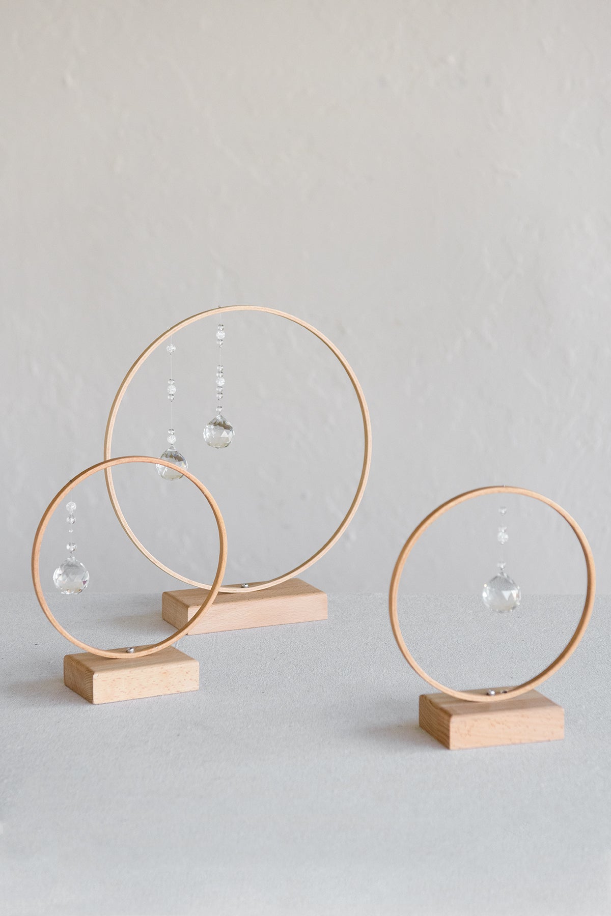 - Dimension: The diameter of the big ring:11 inch . and the small ring: 8 inches. The dimensions of the wooden holders are 2.7" x 3.9" (small) and 2.7" x 5.9" (large).