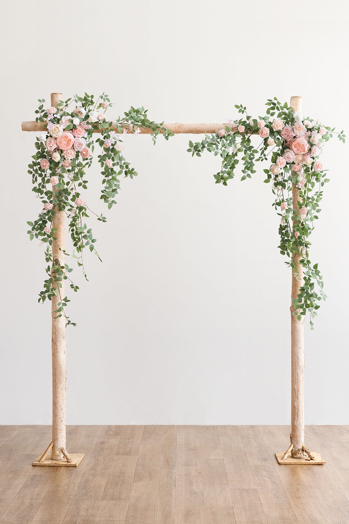 - Size Guide: Each arrangement measures approx. 56" long by 35" wide . the reference arch size is 5ft width by 6.5ft tall . best for small wedding ceremonies.
