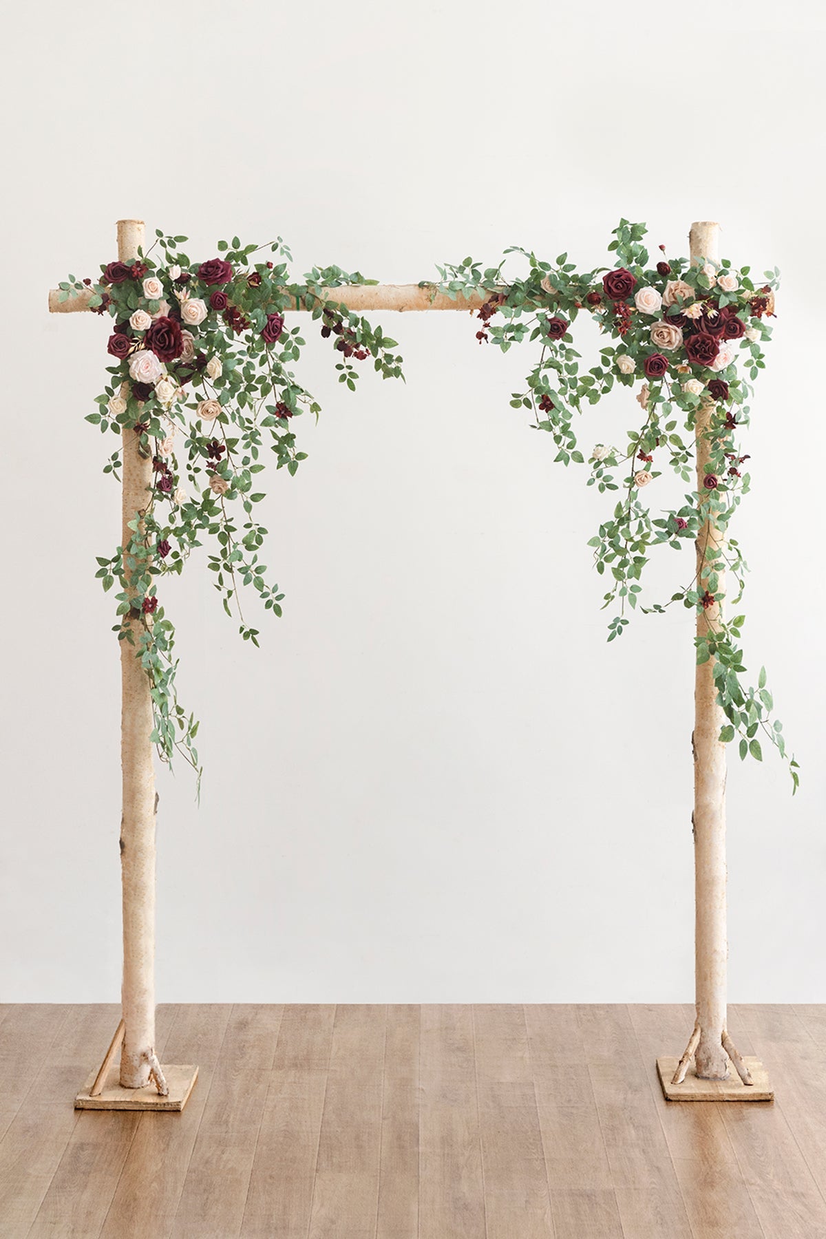 - Size Guide: Each arrangement measures approx. 56" long by 35" wide . the reference arch size is 5ft width by 6.5ft tall . best for small wedding ceremonies.