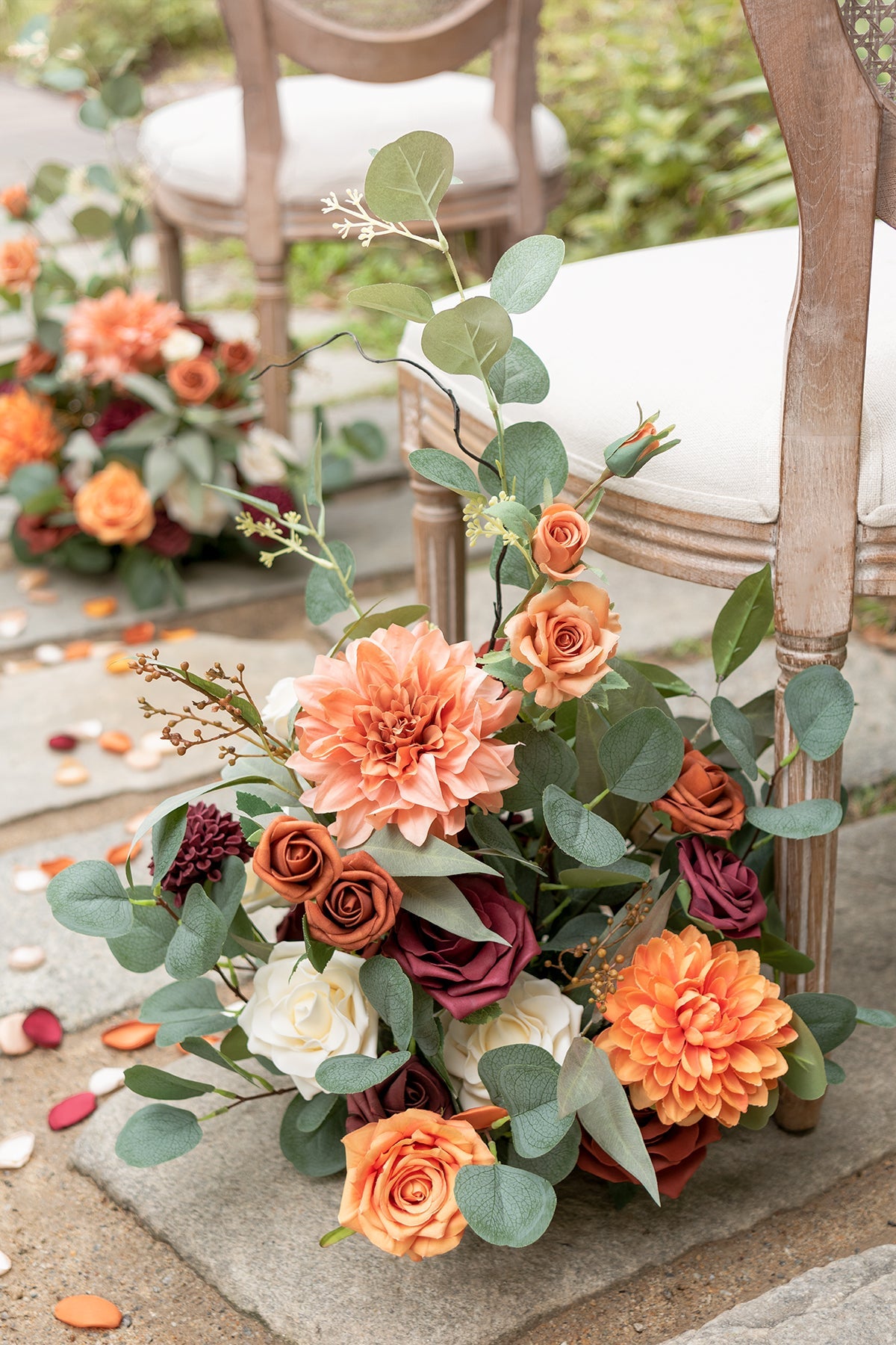 - Cost-Effective: The flower arrangement was made with realistic silk and foam flowers . the best alternative to expensive fresh flowers and greeneries . they will stay and look beautiful all day . not wilting and turning brown . while its budget is just 50% or less of the fresh flower. They could be good decorations for your home after your event.
