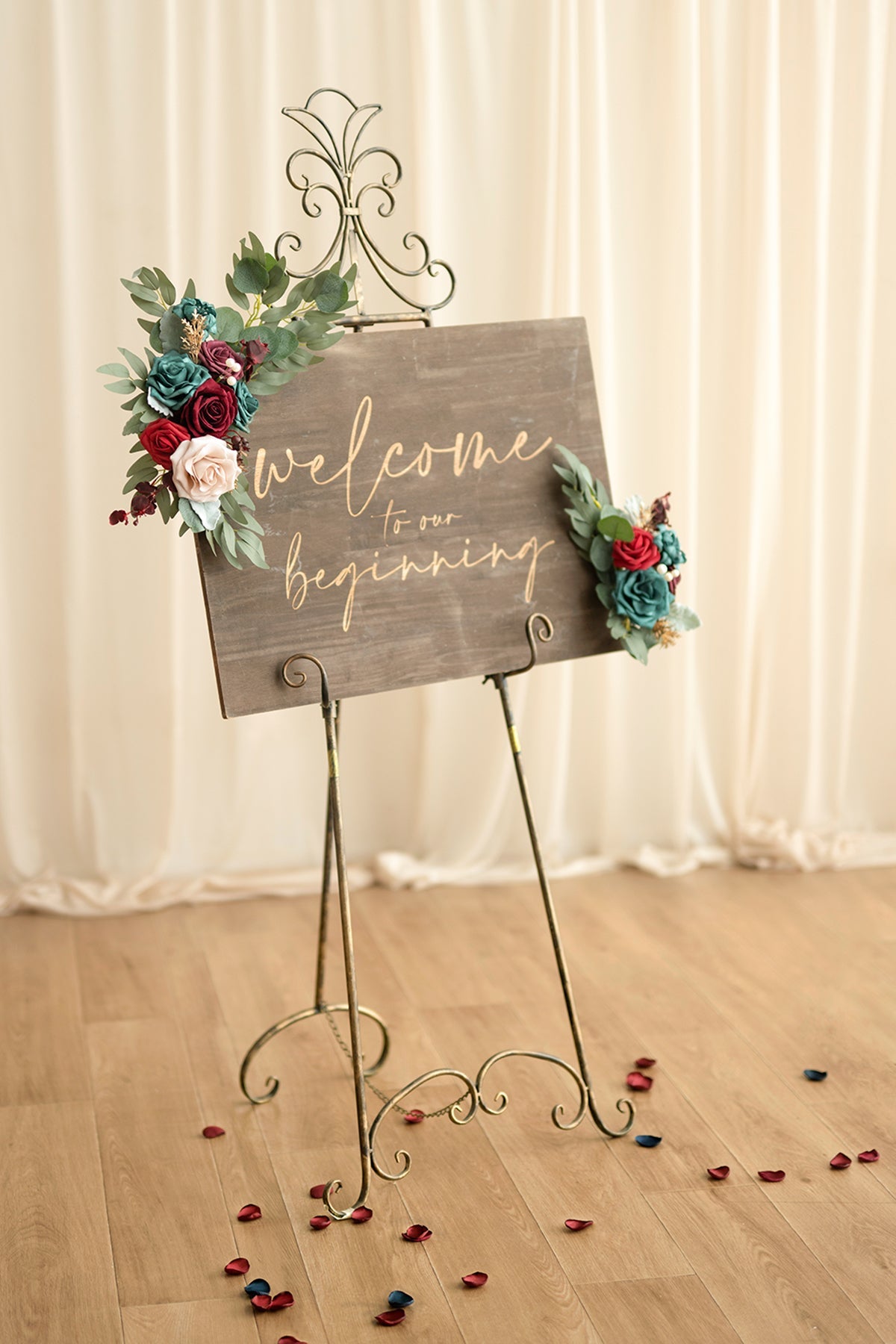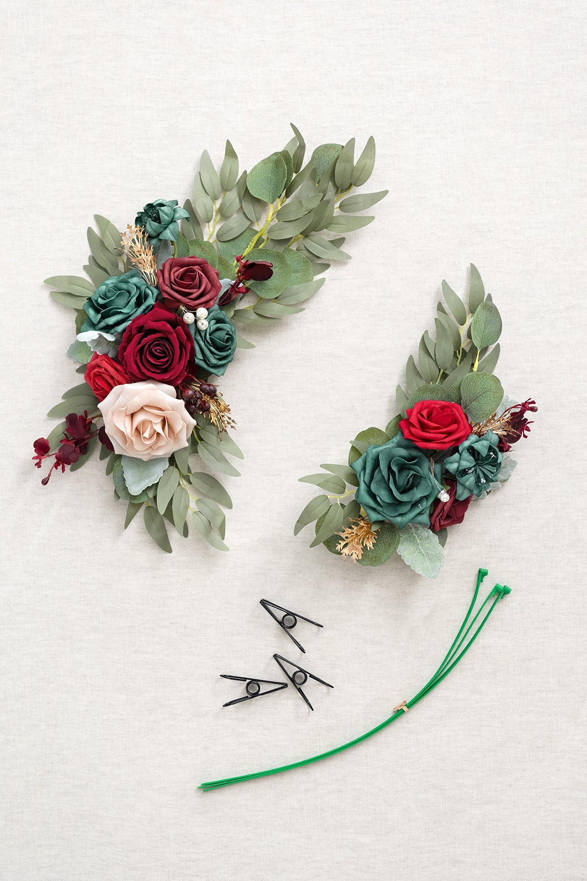 - Material: Handmade item . flower swag made of artificial teal green rose . dark red rose . burgundy rose . teal green avalanche rose . nude avalanche rose . filled with burgundy berries and flocked lambs ear leaves. Come with cable zip ties and metal clips.