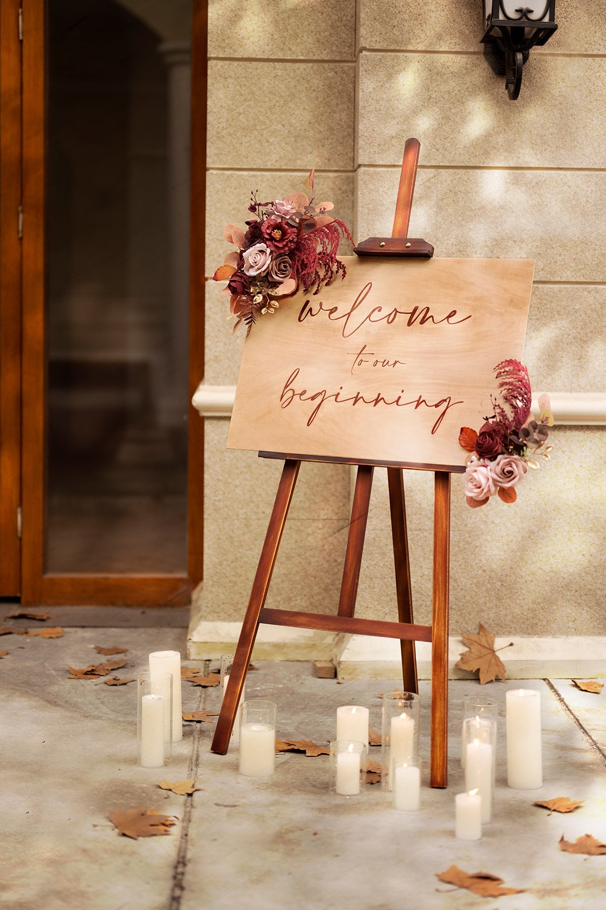 This is a remembrance sign with carved words "Welcome to our beginning". Designed to be used in a wedding or any special event for memorizing loving families/friends.