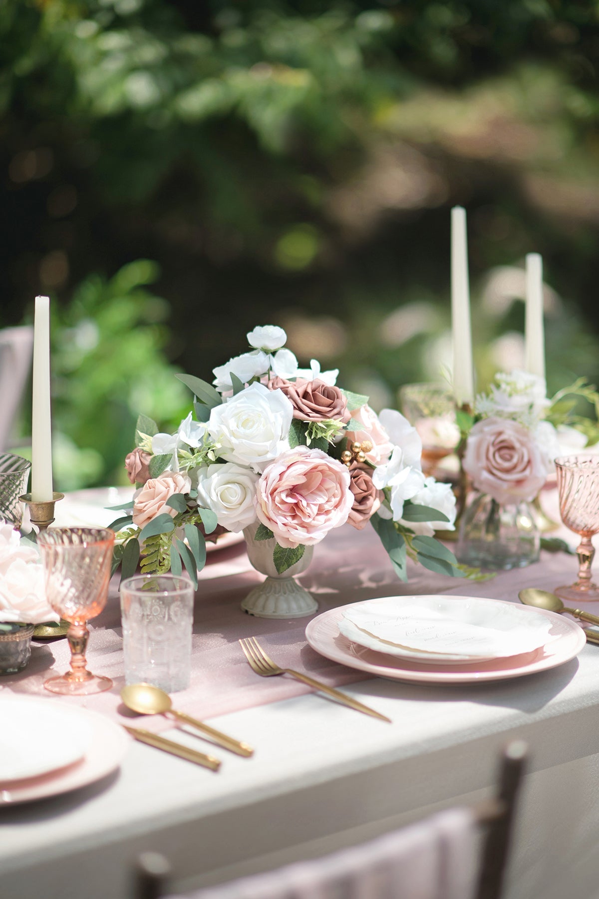 - Rustic Metal Vase: The centerpiece floral comes in the metal footed vase pictured. Eco-friendly and recyclable used. The flowers can be removed from the vase after the wedding.