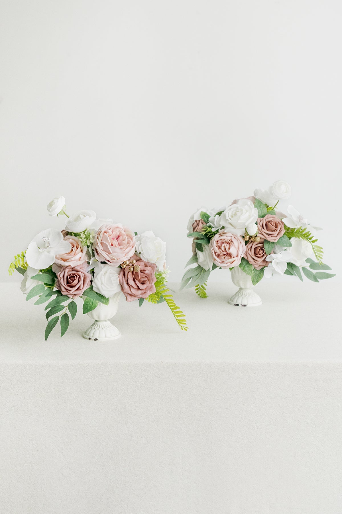 - The centerpiece is a merge of beautiful foam/silk flowers . a variety of greeneries . and filler flowers. Austin . ranunculus . Vendela rose . and orchid accent the centerpiece for a soft and romantic feel.