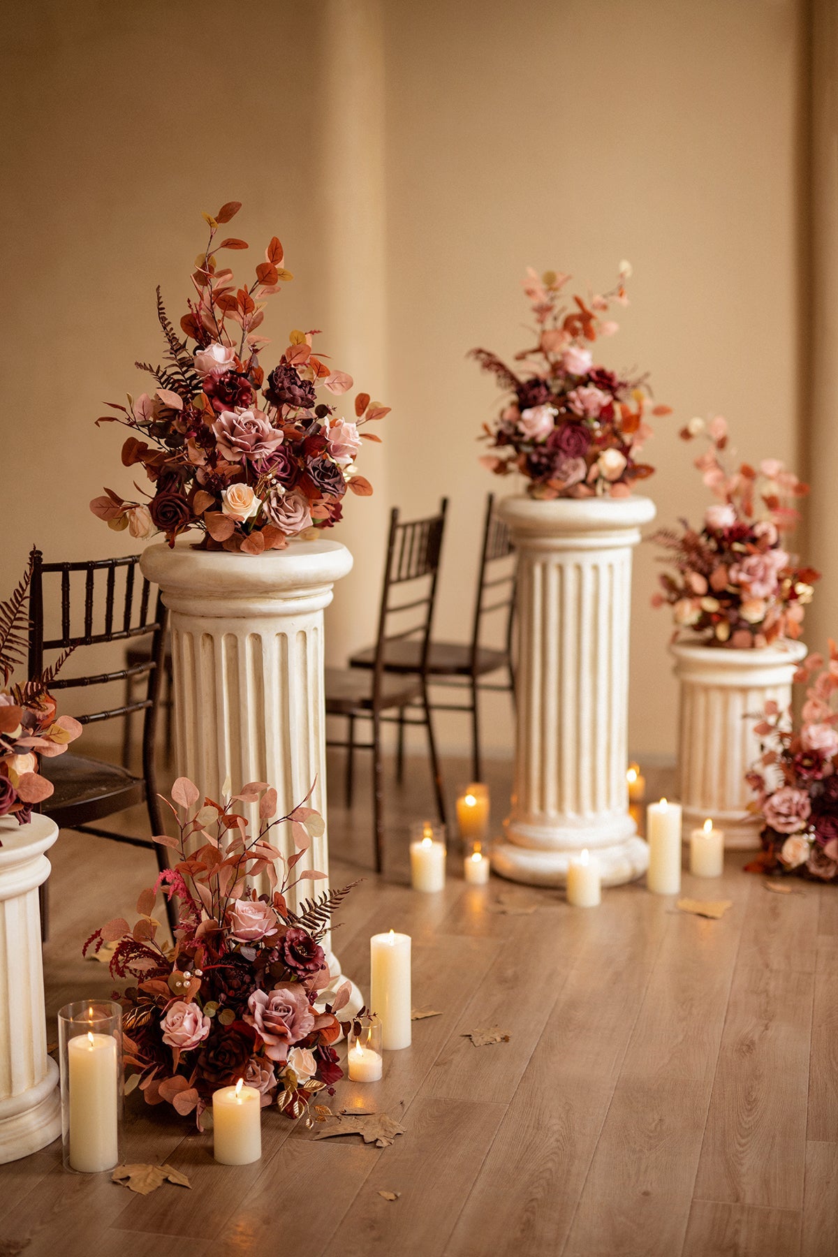Pre-made free-standing floral arrangements are designed for decorating the wedding archway . aisle . welcome entrance . table centerpieces . etc. The use is endless.