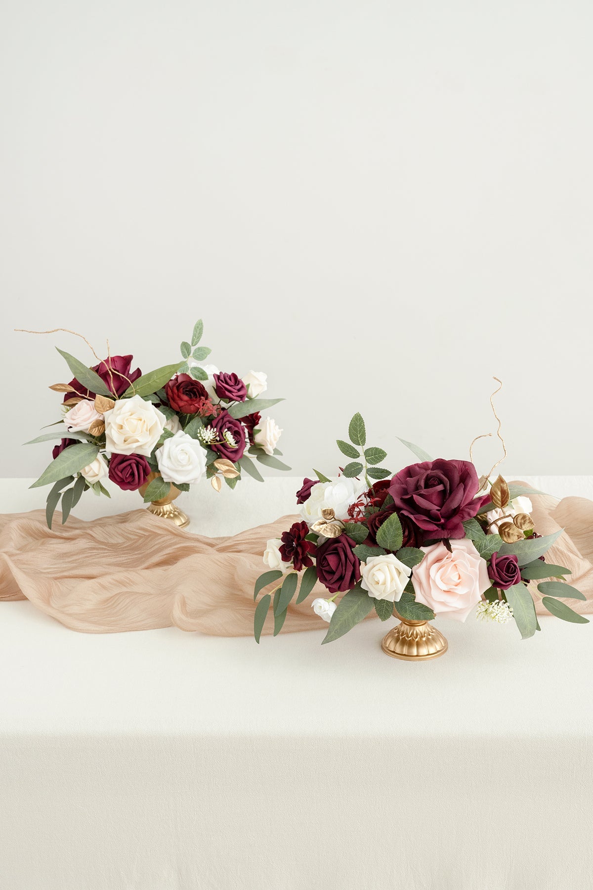 - Size: Each centerpiece measures approx. 11.5" wide by 9" high (the floral 4.5" high . the vase 4.5" high).