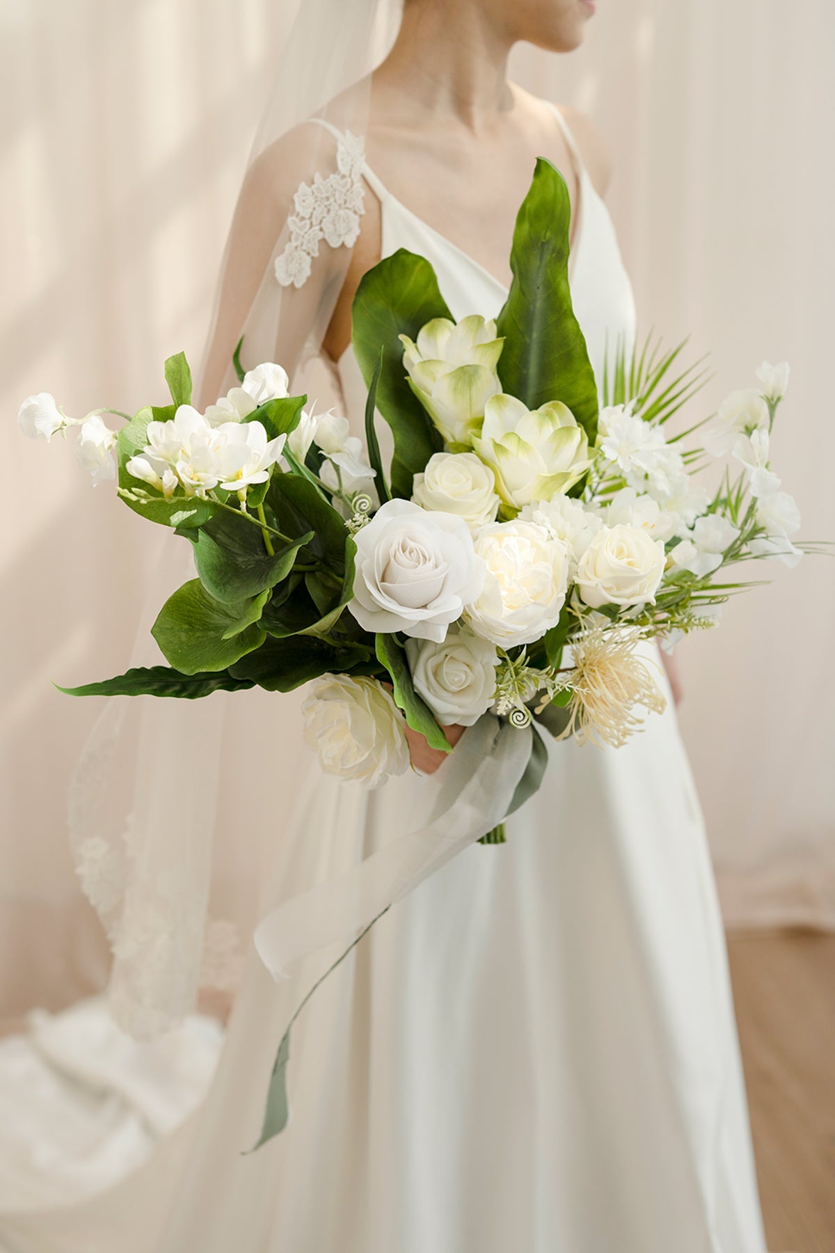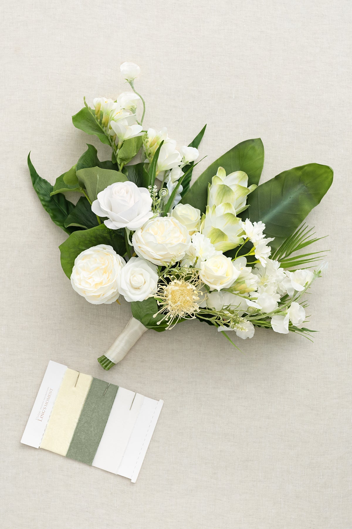 - Package: A 15" bridal bouquet with 3 ribbons wrapped on a card. Easy to add your bouquet ribbon warp style.