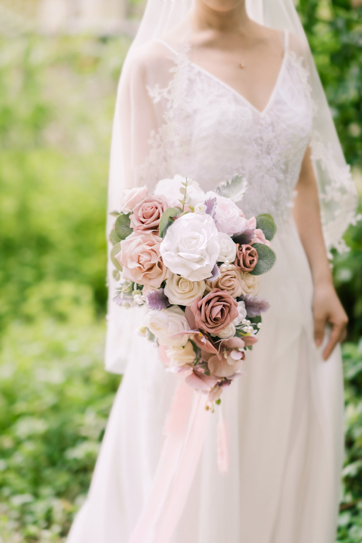 From the material selection . and color palette matching to styling design . which is all elaborately complicated by Ling's senior designer. This french dusty rose bouquet will help you to be eye-catching in your event.