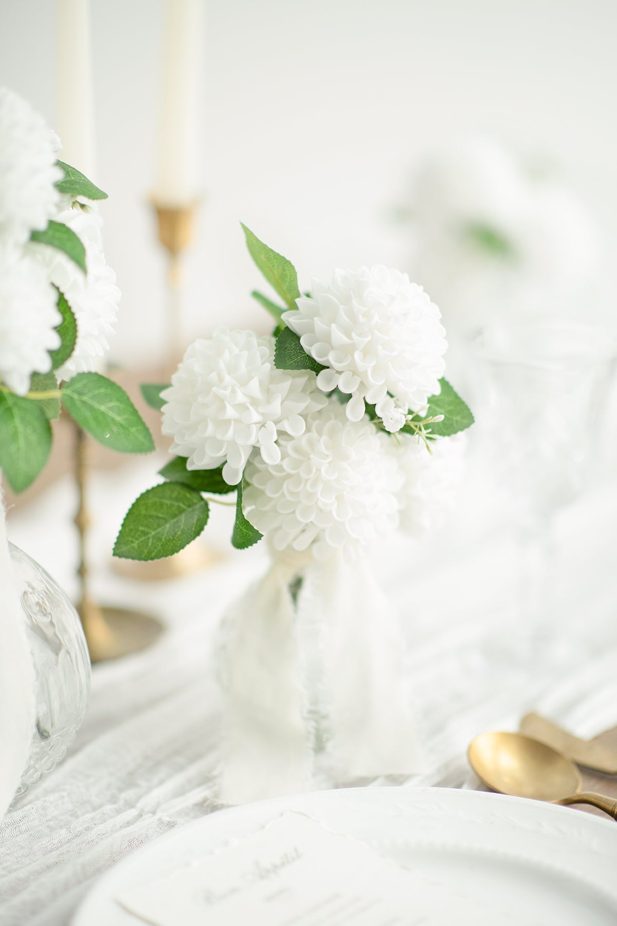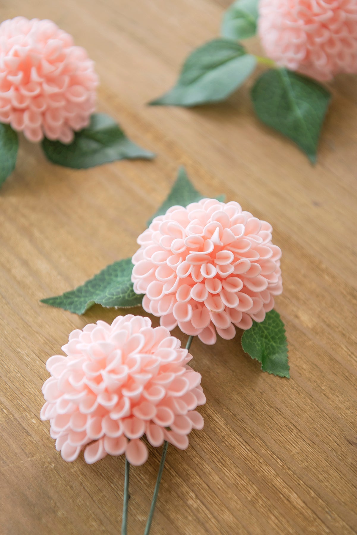- Material: High-Quality foam dahlias; thin wire stems wrapped with green floral tape.