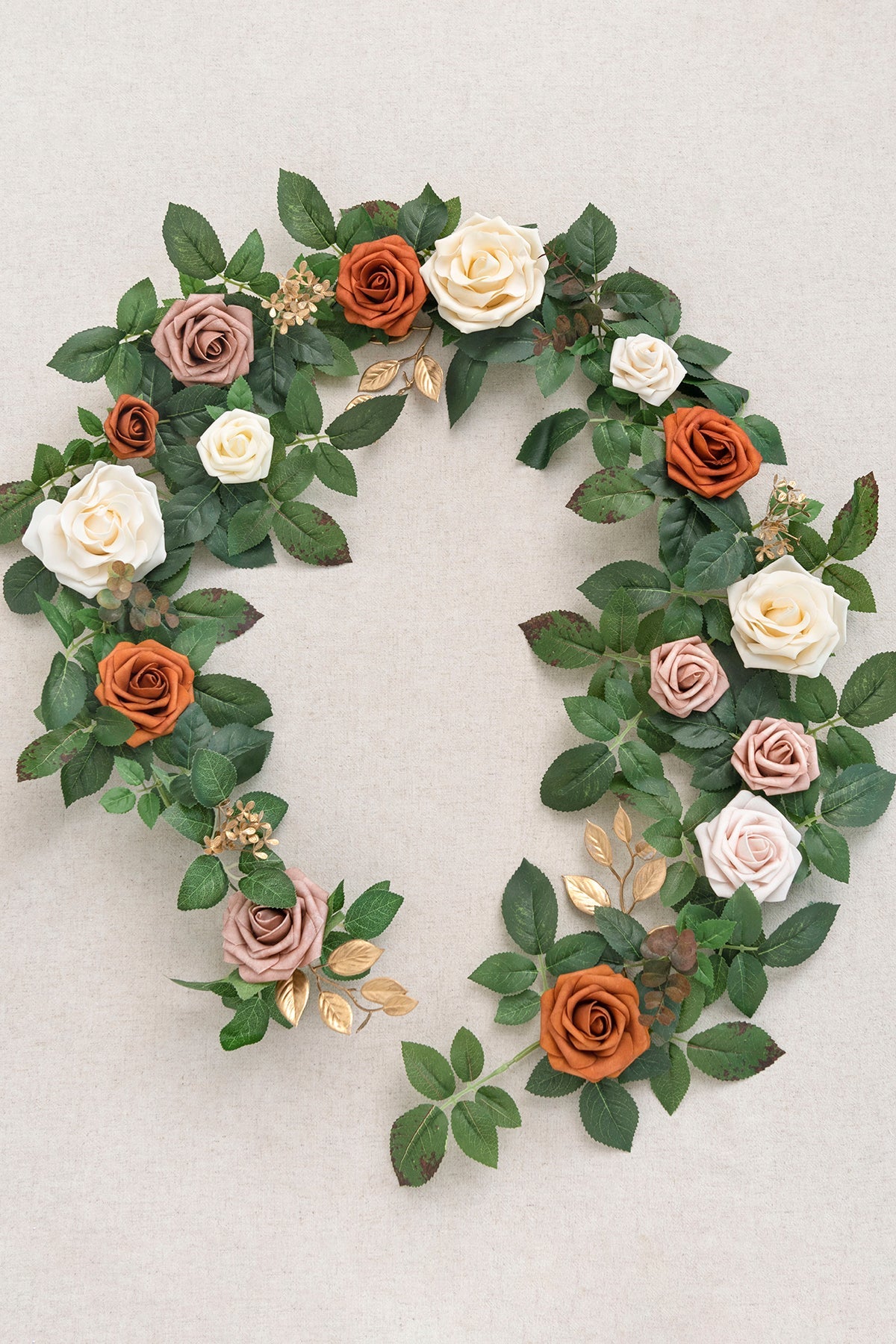 - Material: The garland is made up of a beautiful mix of rose and avalanche rose in artificial foam/silk . some vivid filler flowers . and full of greenery leaves as shown in the pictures.
