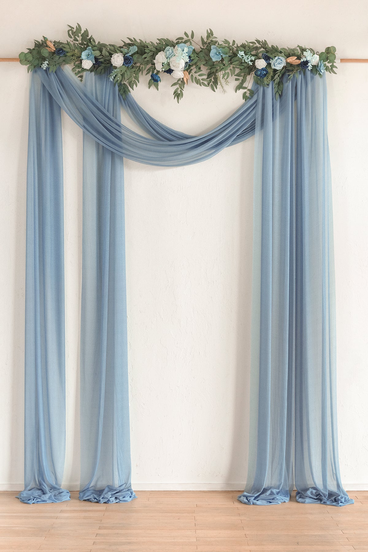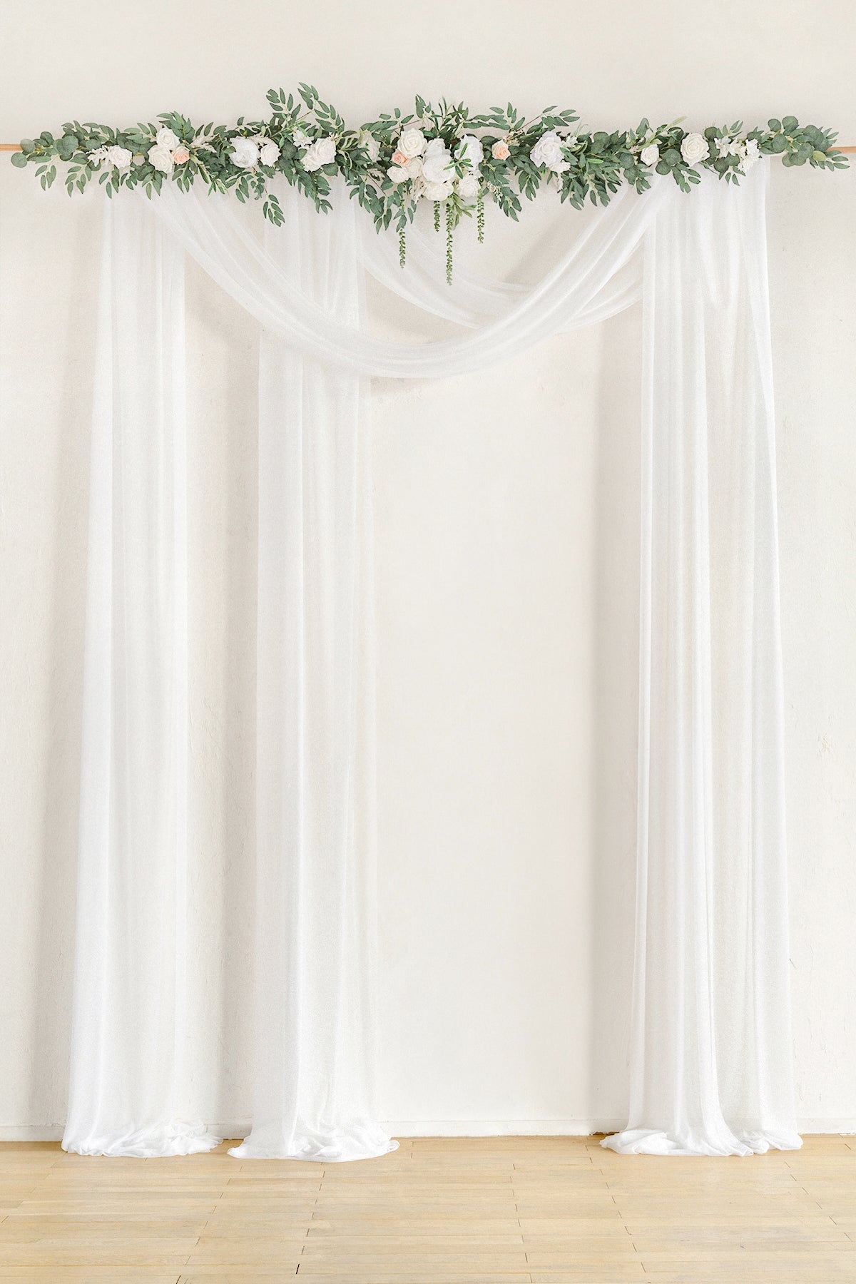 - You may also add our matching floral garland to use together with the drapes to make your arch looks more beautiful.