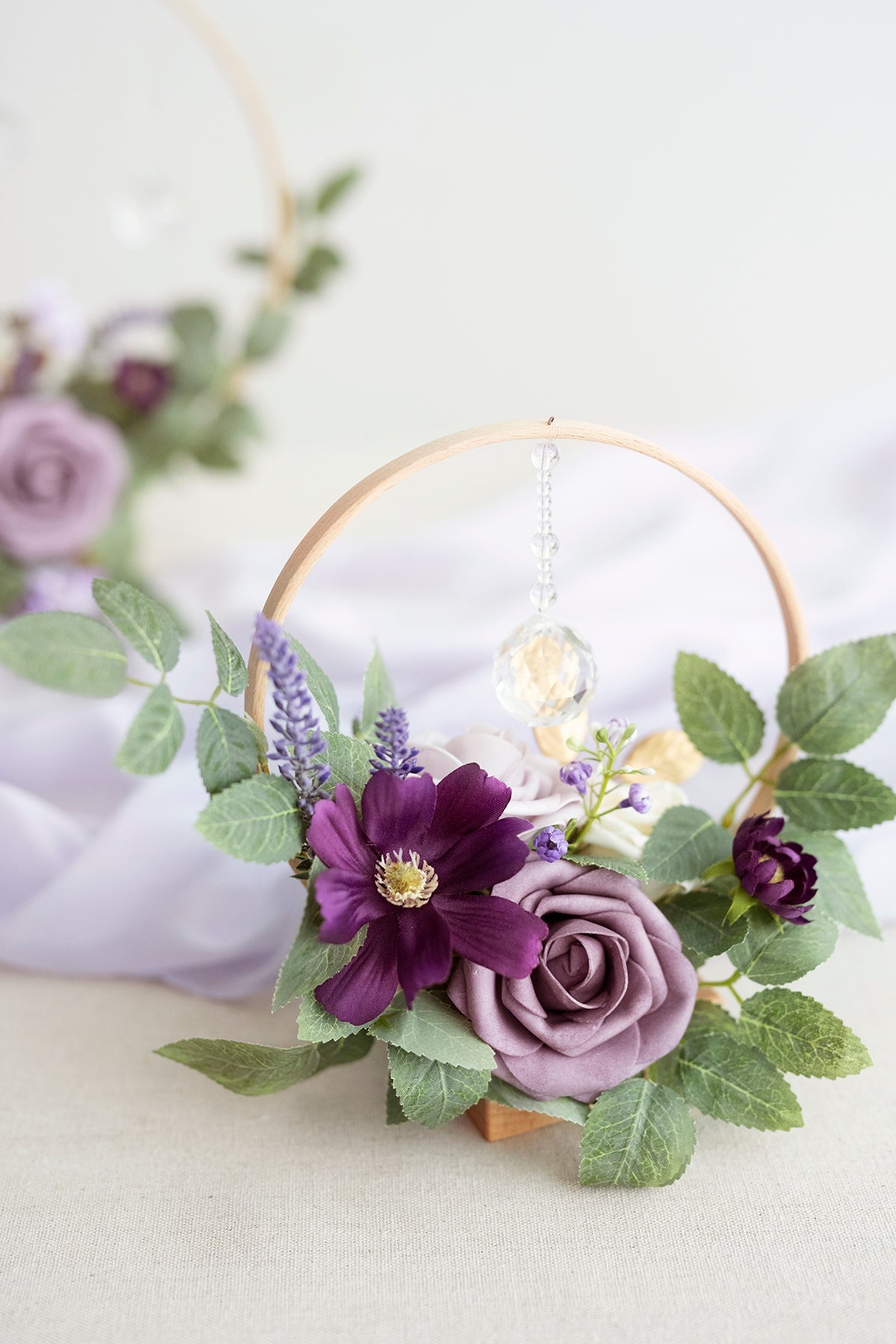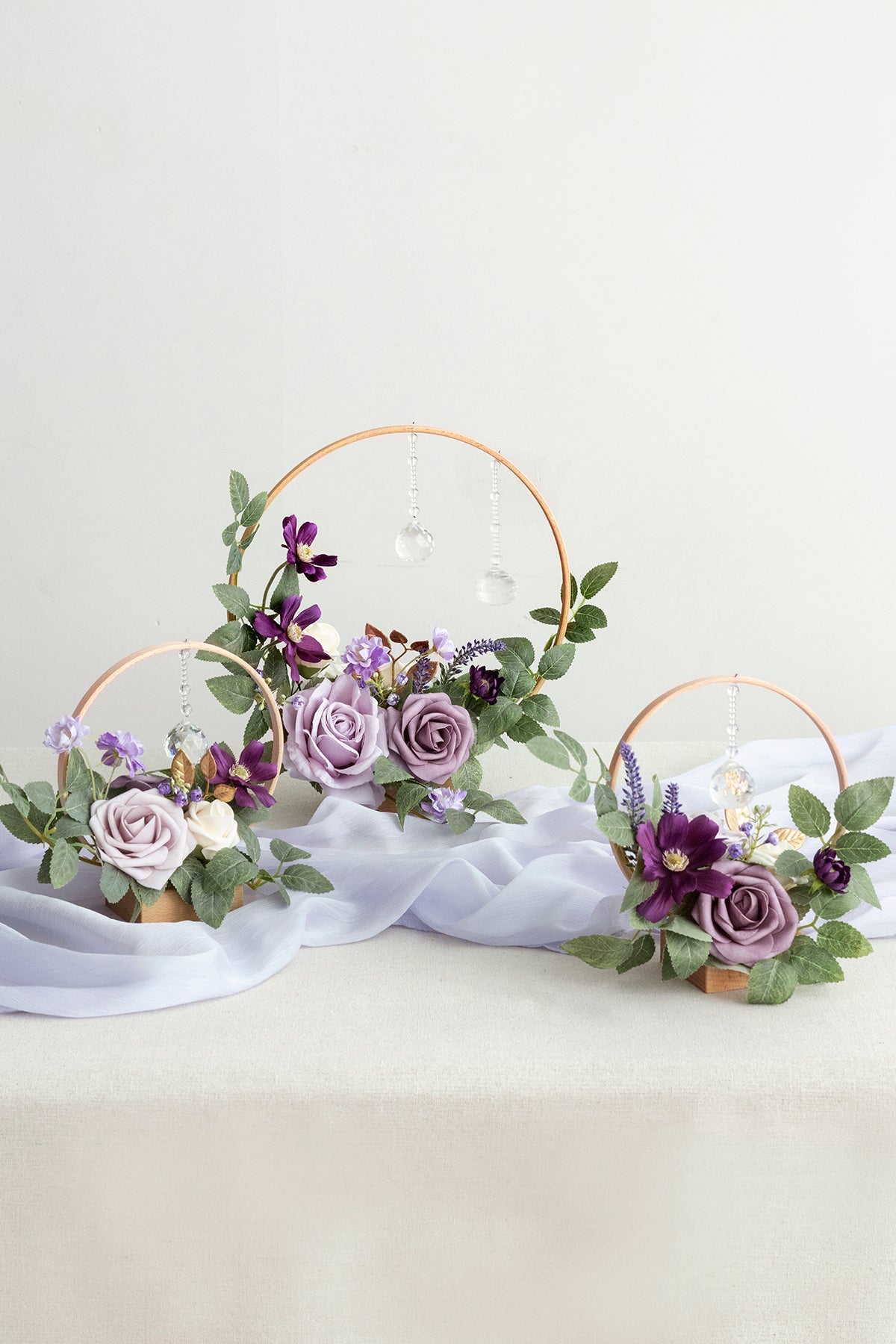 - Material: The holders are made of high-quality beech with detailed rustic grains. The flower arrangement is made of real-looking dusty violet rose . pale lavender rose . cream rose and avalanche rose . violet lavender rose . dotted with crystal . violet mini flower . dusty violet baby's breath . and gold leaf.