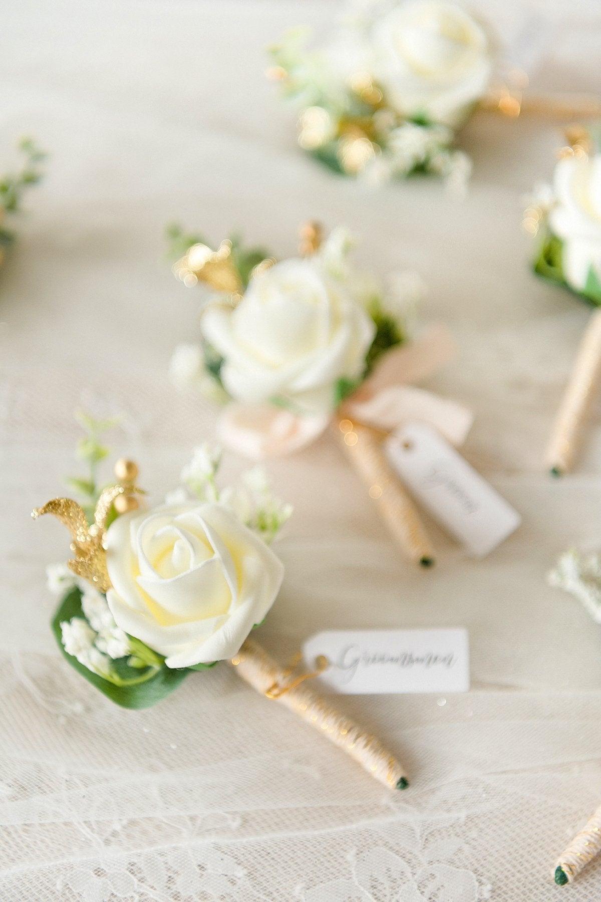 Perfect for the groom . best men . groomsmen . suitable for a garden wedding . rustic boho country french wedding . prom boutonniere . ceremony . anniversary . events . party . or as a wedding gift.