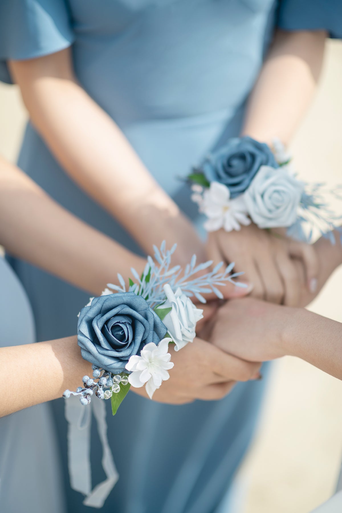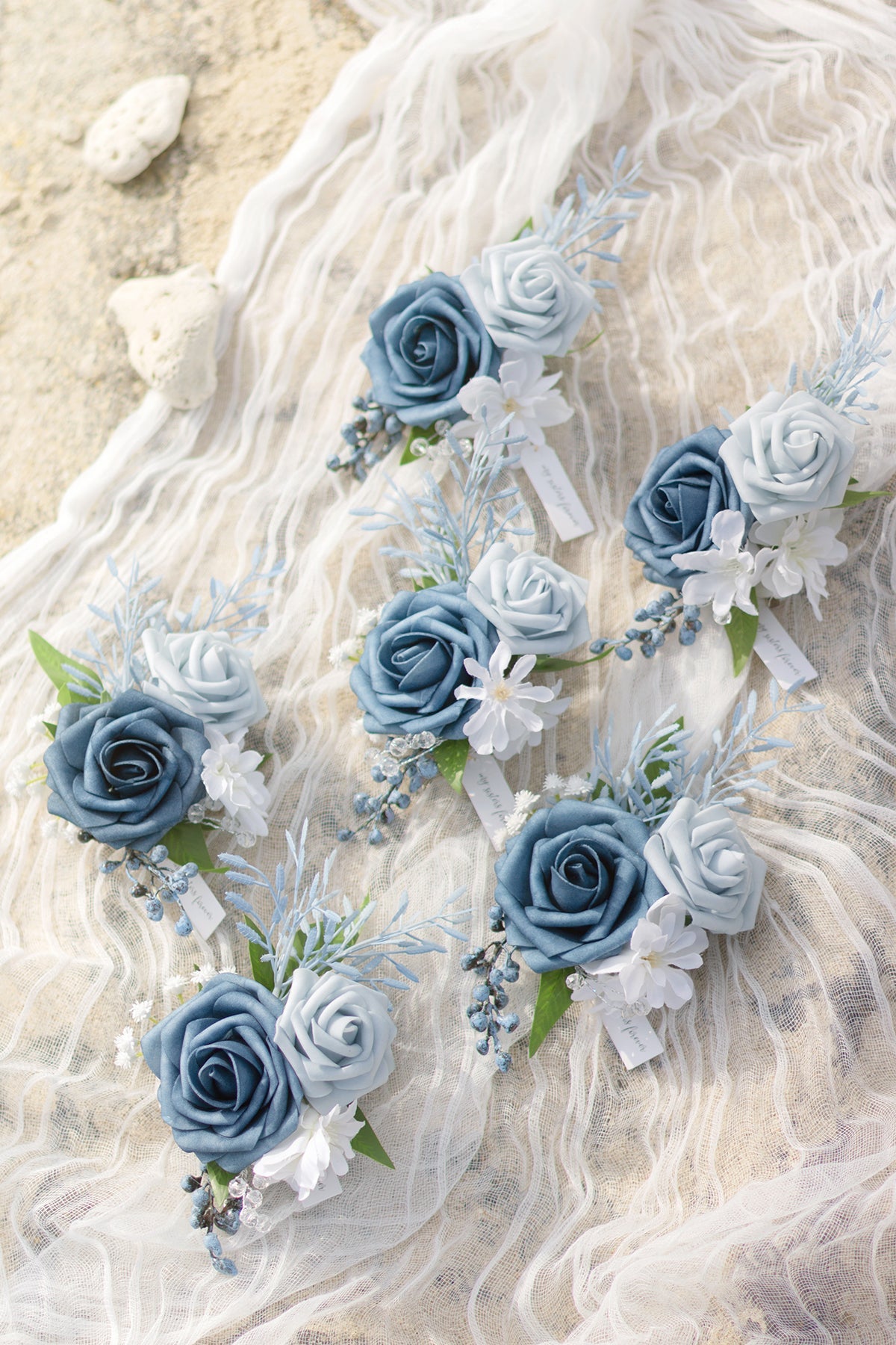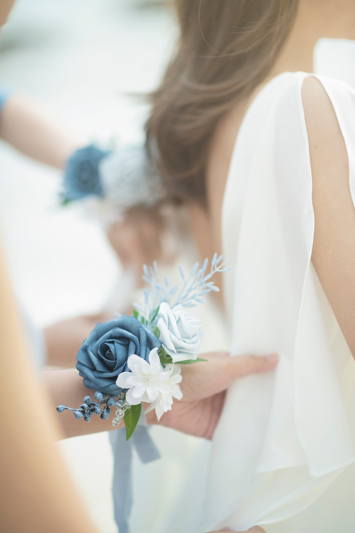 These beautiful corsages are designed for bridesmaids . the mothers of the bride and groom . grandmothers . and any other special female family member or friend. This color combination makes your event full of romance and sophistication . it brings your wedding gentle belle vibes.